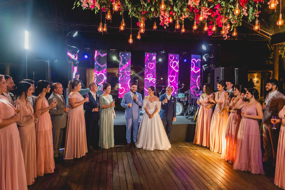 A festa pode ser resumida a: mega animada, decoração linda, registros maravilhosos. Sem dúvidas, os noivos viveram intensamente o Grande Dia que marcou o início da vida a dois deles.