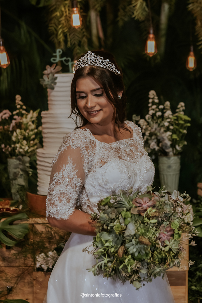 A noiva pediu que o número de flores fosse o mínimo possível já que é apaixonada por cactos e suculentas.