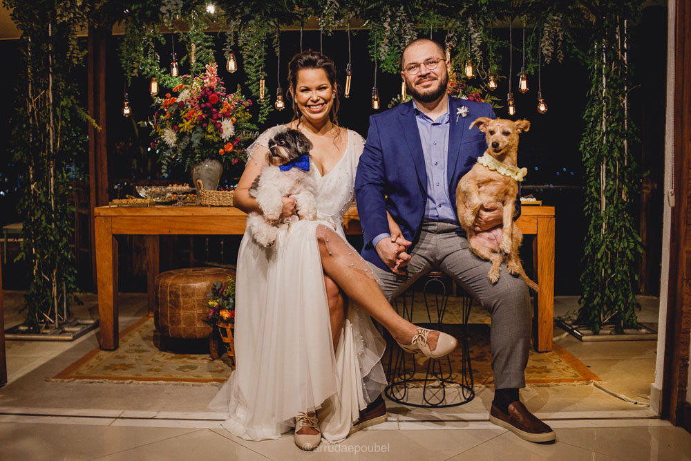 Eles nos procuraram alguns meses antes do Grande Dia (realizado numa quinta-feira) para ajudarmos a planejar essa linda união selecionadíssima para seus 12 convidados. Aliás, 14 convidados, pois não podemos esquecer seus dois cachorrinhos que também participaram deste lindo evento.